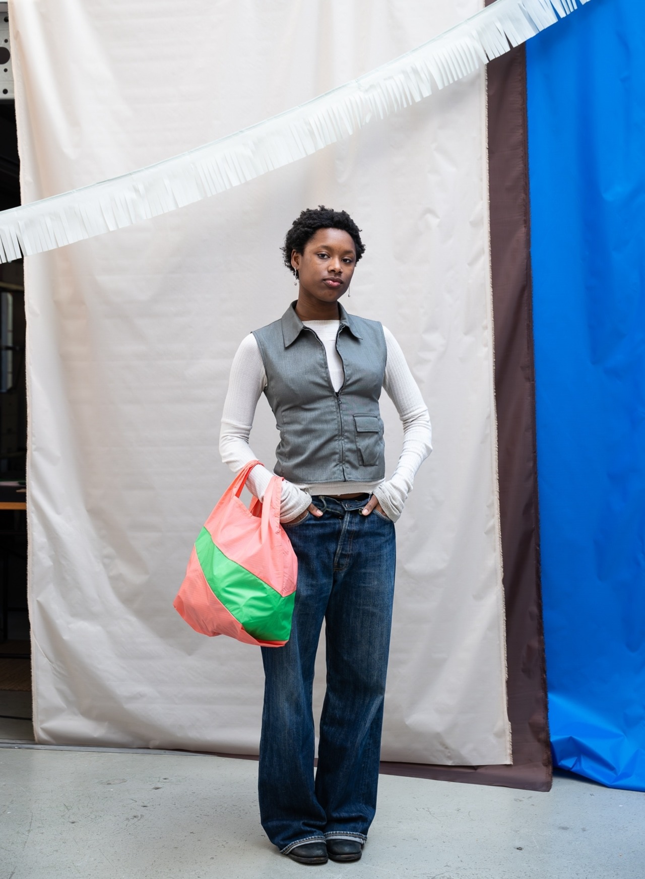 SUSAN BIJL ショッピングバッグ(M)Coral & Greenscreen