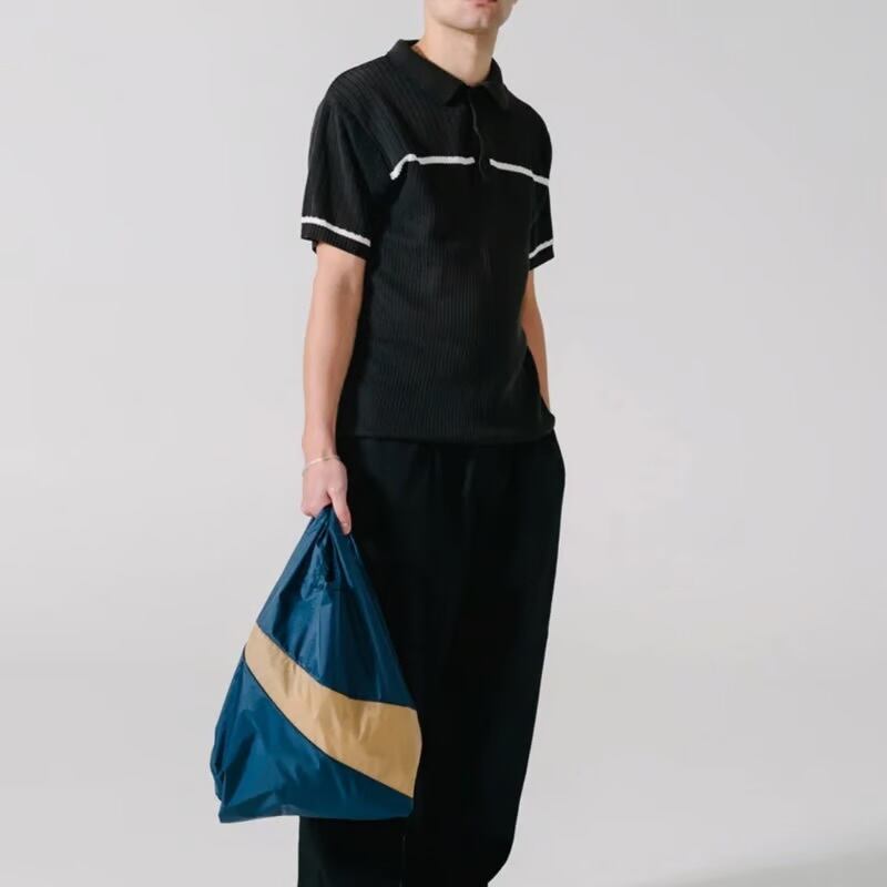 SUSAN BIJL ショッピングバッグ(M)Navy & Camel